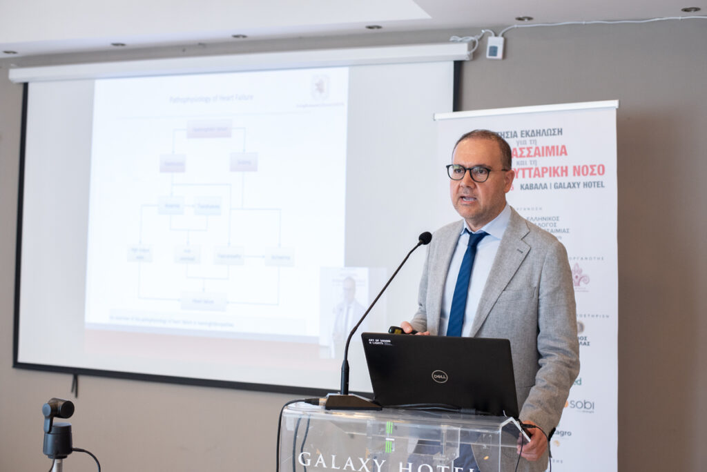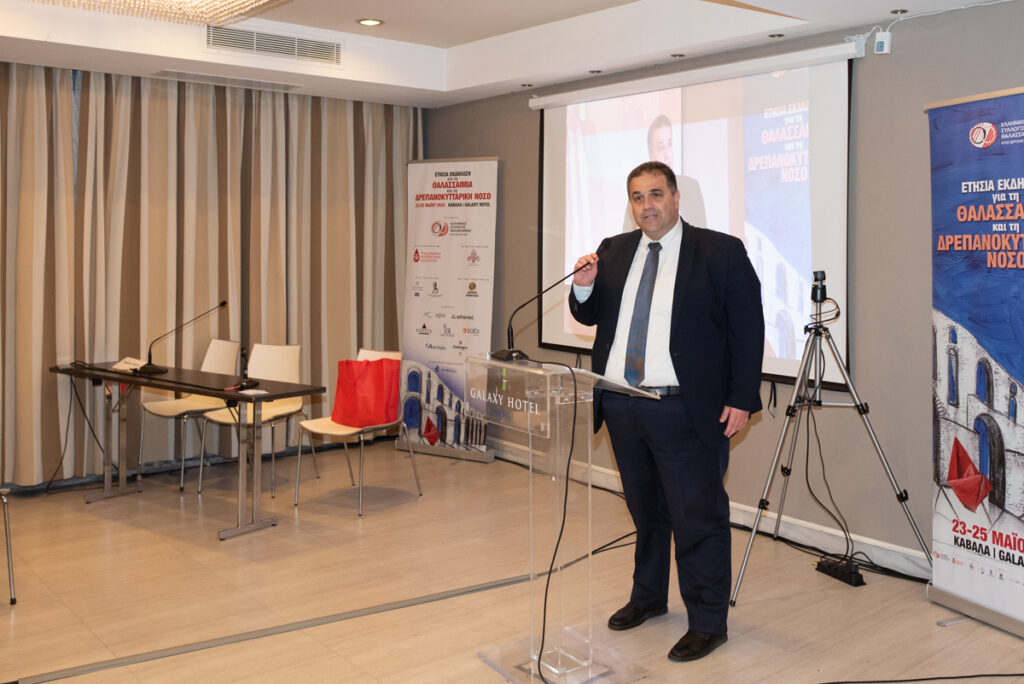 Ο Πρόεδρος του Ελληνικού Συλλόγου Θαλασσαιμίας -και Πρόεδρος της Περιφερειακής Ομοσπονδίας Ατόμων με Αναπηρία Κεντρικής Μακεδονίας- κ. Βασίλης Δήμος, αφού ευχαρίστησε όλους τους τοπικούς φορείς οι οποίοι στήριξαν θεσμικά, οργανωτικά και οικονομικά την επιστημονική συνάντηση, με πολύ συγκινητικά λόγια ευχαρίστησε από καρδιάς και όλους τους συμμετέχοντες πάσχοντες που φέτος η προσέλευση τους ξεπέρασε κάθε προσδοκία. Στη συνέχεα και μεταξύ άλλων στον χαιρετισμό του τόνισε «Φέτος συμπληρώνονται 50 χρόνια από το 1975 χρονιά κατά την οποία ιδρύθηκε ο Ελληνικός Σύλλογος Θαλασσαιμίας. Σαφώς και από τότε άλλαξαν πολλά σε όλους τομείς. Άλλαξαν οι προτεραιότητες, άλλαξαν τα προβλήματα, άλλαξε ο τρόπος διεκδίκησης και επικοινωνίας, άλλαξε ακόμη και ο τρόπος επίλυσης τους. Ένα όμως δεν άλλαξε. Κι αυτή είναι η αγάπη, η υπομονή, η επίμονη και η ΣΤΟΧΟΠΡΟΣΗΛΩΣΗ για την επίτευξη των στόχων μας, η οποία εδώ και 50 χρόνια κρατά σταθερά και αναλλοίωτα στο επίκεντρο της: