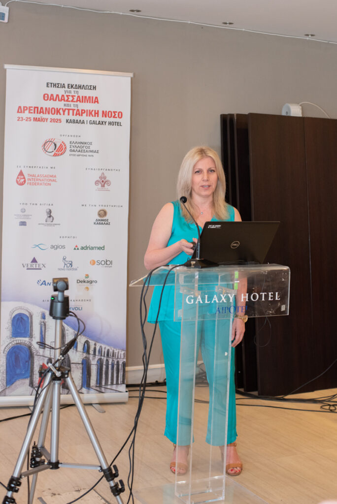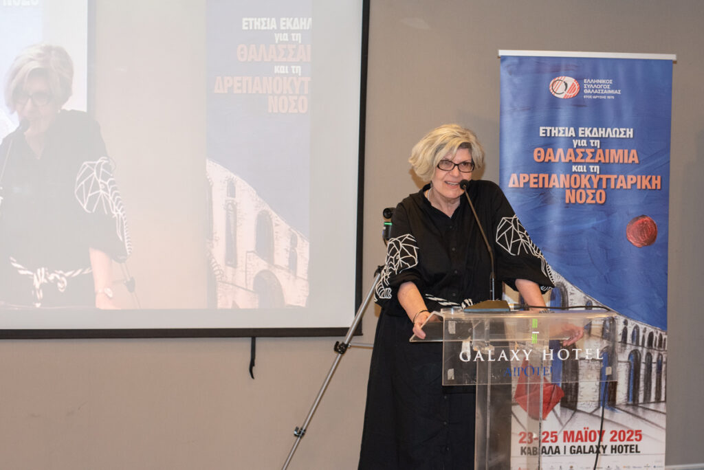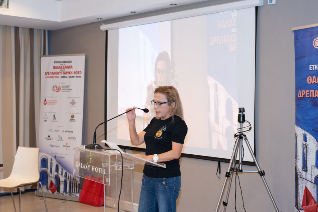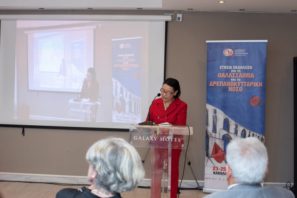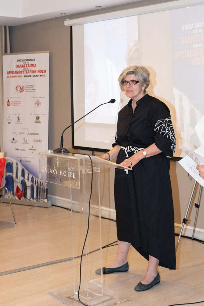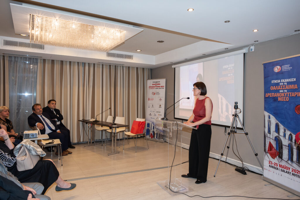 Εκπροσωπώντας τον Πρόεδρο της Διεθνούς Ομοσπονδίας Θαλασσαιμίας κ. Πάνο Εγγλέζο, η κα. Ανδρούλλα Ελευθερίου ως Εκτελεστική Διευθύντρια της ΔΟΘ, η οποία ήρθε από την Κύπρο στην Καβάλα, μεταξύ άλλων στην πολύ σημαντική και γεμάτη ειδήσεις ομιλία της είπε « Η γνώση γύρω από το γενετικό υπόστρωμα και την κλινική έκβαση της θαλασσαιμίας έχει πλέον εξελιχθεί σε τέτοιο βαθμό, ώστε σήμερα να αναπτύσσονται διαφοροποιημένες κατευθυντήριες γραμμές για τις διάφορες μορφές της βήτα και της άλφα θαλασσαιμίας, καθώς και της δρεπανοκυτταρικής νόσου. Η Ελλάδα διαθέτει υψηλότατου επιπέδου επιστημονικό δυναμικό οι οποίοι διαθέτουν σπάνια εμπειρογνωμοσύνη και που έχουν συμβάλει ουσιαστικά στη διεθνή βιβλιογραφία και πρόοδο της Θαλασσαιμίας. Η συγκέντρωση και αξιοποίηση αυτής της εμπειρίας, μέσα από ένα οργανωμένο και αναγνωρισμένο δίκτυο Κέντρων Αναφοράς, είναι απαραίτητη για την καθοδήγηση των μικρότερων περιφερειακών νοσοκομείων (secondary treating centers), αλλά και για την ενίσχυση της διασύνδεσης και ανταλλαγής καλών πρακτικών σε εθνικό, περιφερειακό και διεθνές επίπεδο. Ήδη, η ΔΟΘ έχει αναγνωρίσει και υποστηρίξει δύο τέτοια κέντρα στην Αθήνα ως συνεργαζόμενα, και προσβλέπει στη συνέχιση και ενίσχυση αυτής της προσπάθειας, με την έμπρακτη στήριξη και συνεργασία της Πολιτείας. Είναι απολύτως αναγκαία η θεσμοθέτηση μιας δομημένης και λειτουργικά αποτελεσματικής και με δεσμευτικό –πέραν του συμβουλευτικού της χαρακτήρα- Εθνικής Επιτροπής για τη Θαλασσαιμία και τη Δρεπανοκυτταρική Νόσο, με τη συμμετοχή όλων των εμπλεκομένων φορέων: κρατικών αρχών, επαγγελματιών υγείας, εκπροσώπων των πασχόντων, ερευνητικών και ακαδημαϊκών ιδρυμάτων. Μια τέτοια πολυσυλλεκτική και συμμετοχική επιτροπή θα διασφαλίζει ότι οι εισηγήσεις προς τις αρμόδιες κρατικές υπηρεσίες βασίζονται σε επιστημονικά δεδομένα, στη συλλογική εμπειρία και στις ανάγκες των ίδιων των πασχόντων. Παράλληλα, είναι καθήκον μας να διαφυλάξουμε ως κόρη οφθαλμού το πρόγραμμα πρόληψης και να διασφαλίσουμε την αναβάθμιση της λειτουργίας του, μέσα από την ενεργή επανατοποθέτηση των αρμόδιων αρχών και τη συνεχή αξιολόγηση και βελτίωση των υπηρεσιών. Η ΔΟΘ παραμένει αρωγός και συμπαραστάτης στις προσπάθειες των πασχόντων για βελτιστοποίηση της ποιότητας της ζωής τους. Τα πολυποίκιλα εργαλεία, τα εκπαιδευτικά προγράμματα αλλά και άλλες δράσεις της ΔΟΘ είναι στην απόλυτη διάθεση των πασχόντων, των οικογενειών τους, των επαγγελματιών υγείας, των αρμόδιων εθνικών αρχών και της κοινωνίας ευρύτερα. Η παγκόσμια κοινότητα των πασχόντων παρακολουθεί με ενδιαφέρον τον τρόπο που εσείς οι πάσχοντες στην Ελλάδα διεκδικείτε τα δικαιώματα σας και η ΔΟΘ μεταλαμπαδεύει τις δράσεις και ενέργειες σας ως άριστες πρακτικές προς μίμηση και ισχυρότατη βάση για ανάπτυξη της δικής τους δεξιότητας και εποικοδομητικής συνηγορίας».