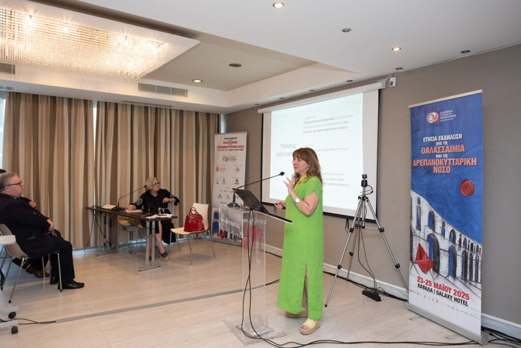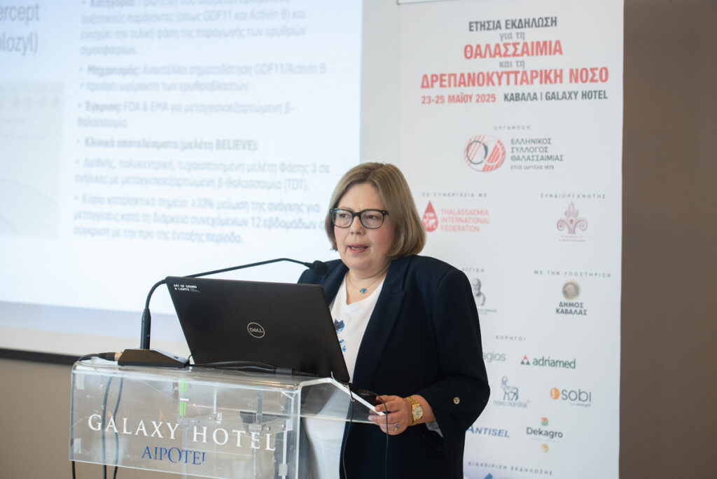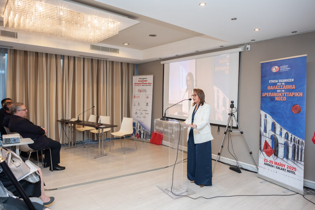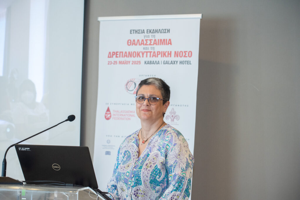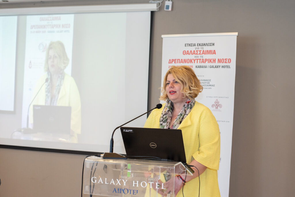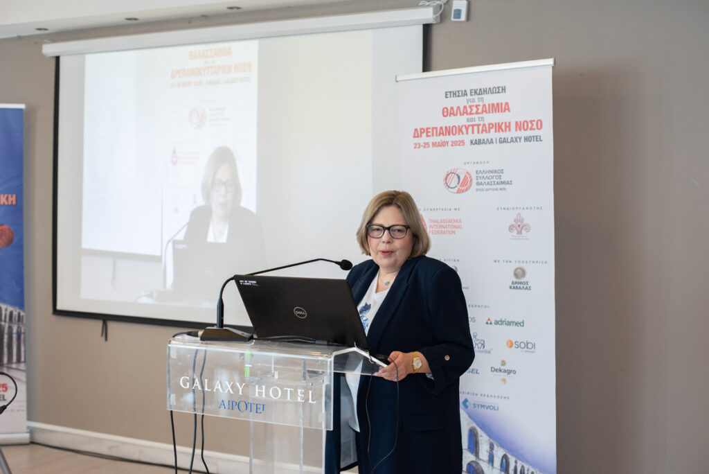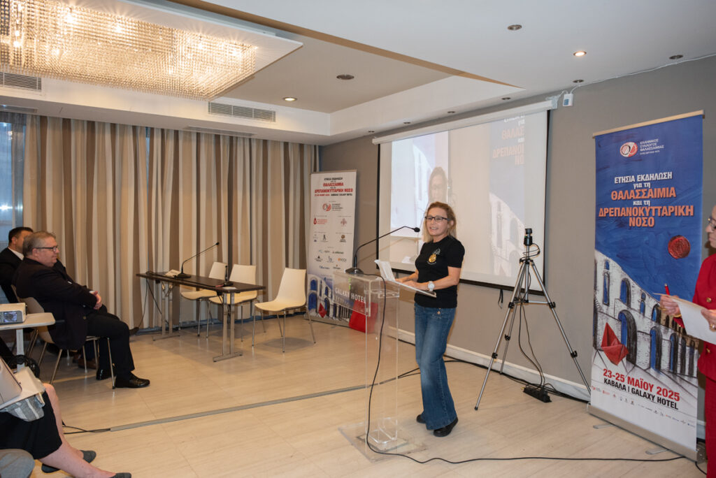 Εκπροσωπώντας τον Πρόεδρο της Διεθνούς Ομοσπονδίας Θαλασσαιμίας κ. Πάνο Εγγλέζο, η κα. Ανδρούλλα Ελευθερίου ως Εκτελεστική Διευθύντρια της ΔΟΘ, η οποία ήρθε από την Κύπρο στην Καβάλα, μεταξύ άλλων στην πολύ σημαντική και γεμάτη ειδήσεις ομιλία της είπε « Η γνώση γύρω από το γενετικό υπόστρωμα και την κλινική έκβαση της θαλασσαιμίας έχει πλέον εξελιχθεί σε τέτοιο βαθμό, ώστε σήμερα να αναπτύσσονται διαφοροποιημένες κατευθυντήριες γραμμές για τις διάφορες μορφές της βήτα και της άλφα θαλασσαιμίας, καθώς και της δρεπανοκυτταρικής νόσου. Η Ελλάδα διαθέτει υψηλότατου επιπέδου επιστημονικό δυναμικό οι οποίοι διαθέτουν σπάνια εμπειρογνωμοσύνη και που έχουν συμβάλει ουσιαστικά στη διεθνή βιβλιογραφία και πρόοδο της Θαλασσαιμίας. Η συγκέντρωση και αξιοποίηση αυτής της εμπειρίας, μέσα από ένα οργανωμένο και αναγνωρισμένο δίκτυο Κέντρων Αναφοράς, είναι απαραίτητη για την καθοδήγηση των μικρότερων περιφερειακών νοσοκομείων (secondary treating centers), αλλά και για την ενίσχυση της διασύνδεσης και ανταλλαγής καλών πρακτικών σε εθνικό, περιφερειακό και διεθνές επίπεδο. Ήδη, η ΔΟΘ έχει αναγνωρίσει και υποστηρίξει δύο τέτοια κέντρα στην Αθήνα ως συνεργαζόμενα, και προσβλέπει στη συνέχιση και ενίσχυση αυτής της προσπάθειας, με την έμπρακτη στήριξη και συνεργασία της Πολιτείας. Είναι απολύτως αναγκαία η θεσμοθέτηση μιας δομημένης και λειτουργικά αποτελεσματικής και με δεσμευτικό –πέραν του συμβουλευτικού της χαρακτήρα- Εθνικής Επιτροπής για τη Θαλασσαιμία και τη Δρεπανοκυτταρική Νόσο, με τη συμμετοχή όλων των εμπλεκομένων φορέων: κρατικών αρχών, επαγγελματιών υγείας, εκπροσώπων των πασχόντων, ερευνητικών και ακαδημαϊκών ιδρυμάτων. Μια τέτοια πολυσυλλεκτική και συμμετοχική επιτροπή θα διασφαλίζει ότι οι εισηγήσεις προς τις αρμόδιες κρατικές υπηρεσίες βασίζονται σε επιστημονικά δεδομένα, στη συλλογική εμπειρία και στις ανάγκες των ίδιων των πασχόντων. Παράλληλα, είναι καθήκον μας να διαφυλάξουμε ως κόρη οφθαλμού το πρόγραμμα πρόληψης και να διασφαλίσουμε την αναβάθμιση της λειτουργίας του, μέσα από την ενεργή επανατοποθέτηση των αρμόδιων αρχών και τη συνεχή αξιολόγηση και βελτίωση των υπηρεσιών. Η ΔΟΘ παραμένει αρωγός και συμπαραστάτης στις προσπάθειες των πασχόντων για βελτιστοποίηση της ποιότητας της ζωής τους. Τα πολυποίκιλα εργαλεία, τα εκπαιδευτικά προγράμματα αλλά και άλλες δράσεις της ΔΟΘ είναι στην απόλυτη διάθεση των πασχόντων, των οικογενειών τους, των επαγγελματιών υγείας, των αρμόδιων εθνικών αρχών και της κοινωνίας ευρύτερα. Η παγκόσμια κοινότητα των πασχόντων παρακολουθεί με ενδιαφέρον τον τρόπο που εσείς οι πάσχοντες στην Ελλάδα διεκδικείτε τα δικαιώματα σας και η ΔΟΘ μεταλαμπαδεύει τις δράσεις και ενέργειες σας ως άριστες πρακτικές προς μίμηση και ισχυρότατη βάση για ανάπτυξη της δικής τους δεξιότητας και εποικοδομητικής συνηγορίας».