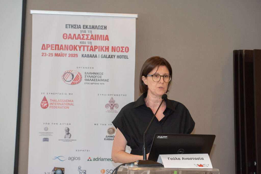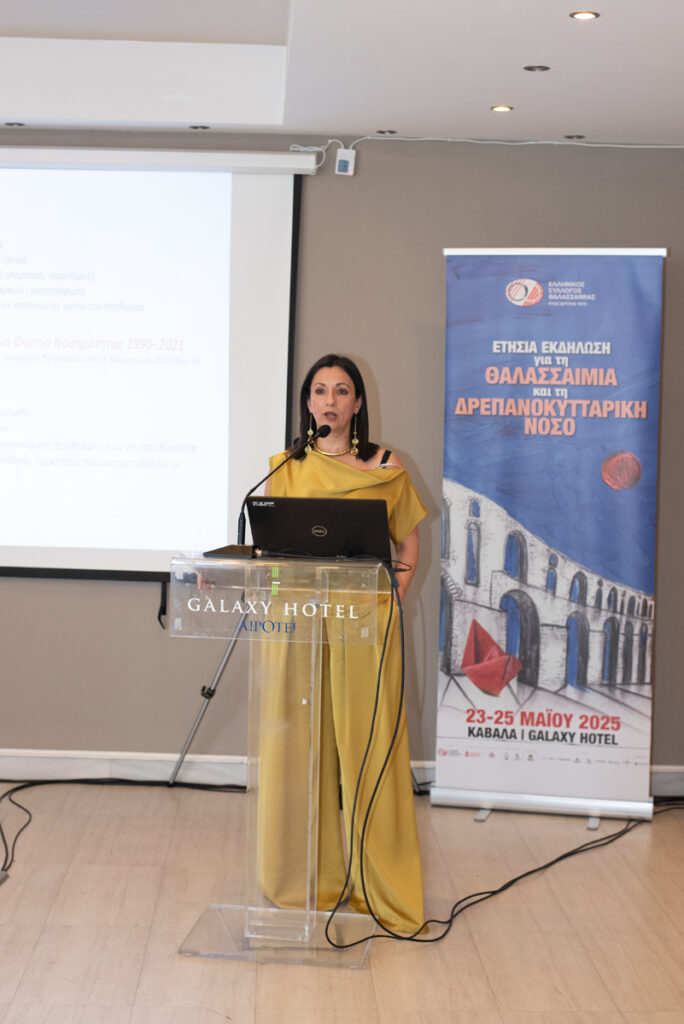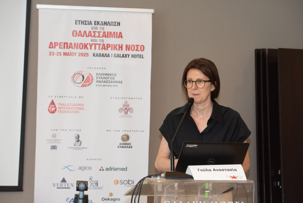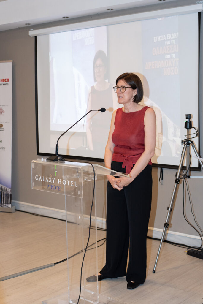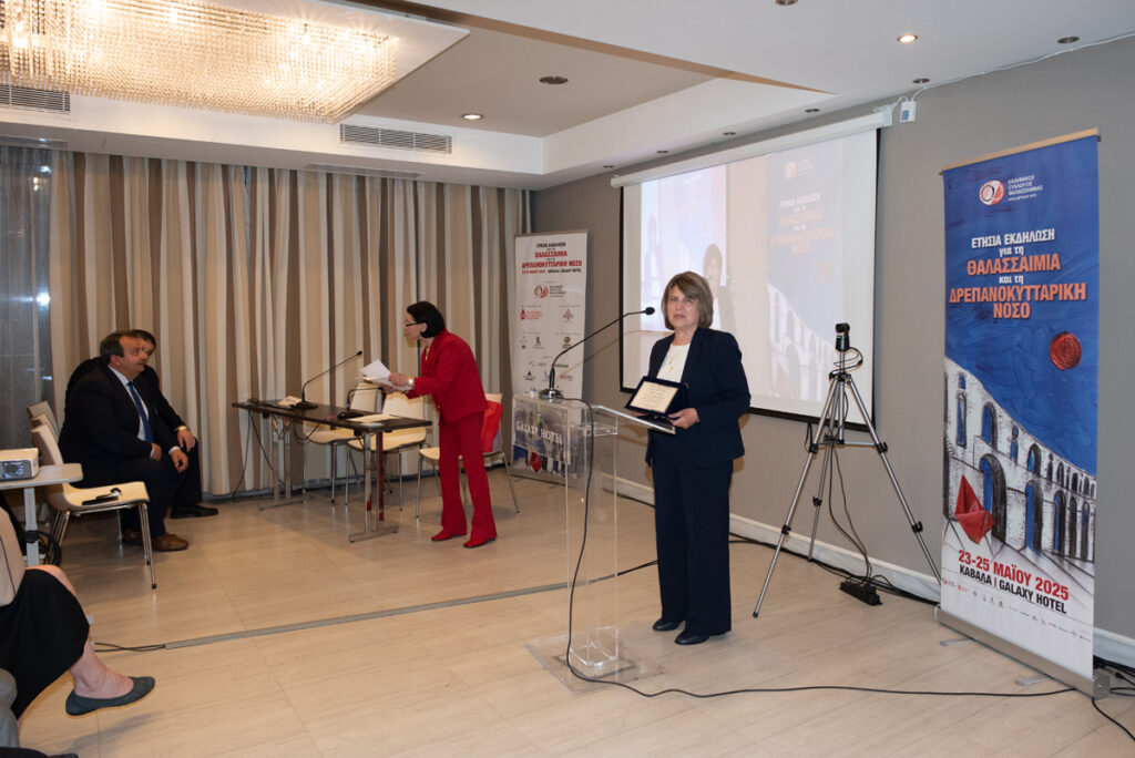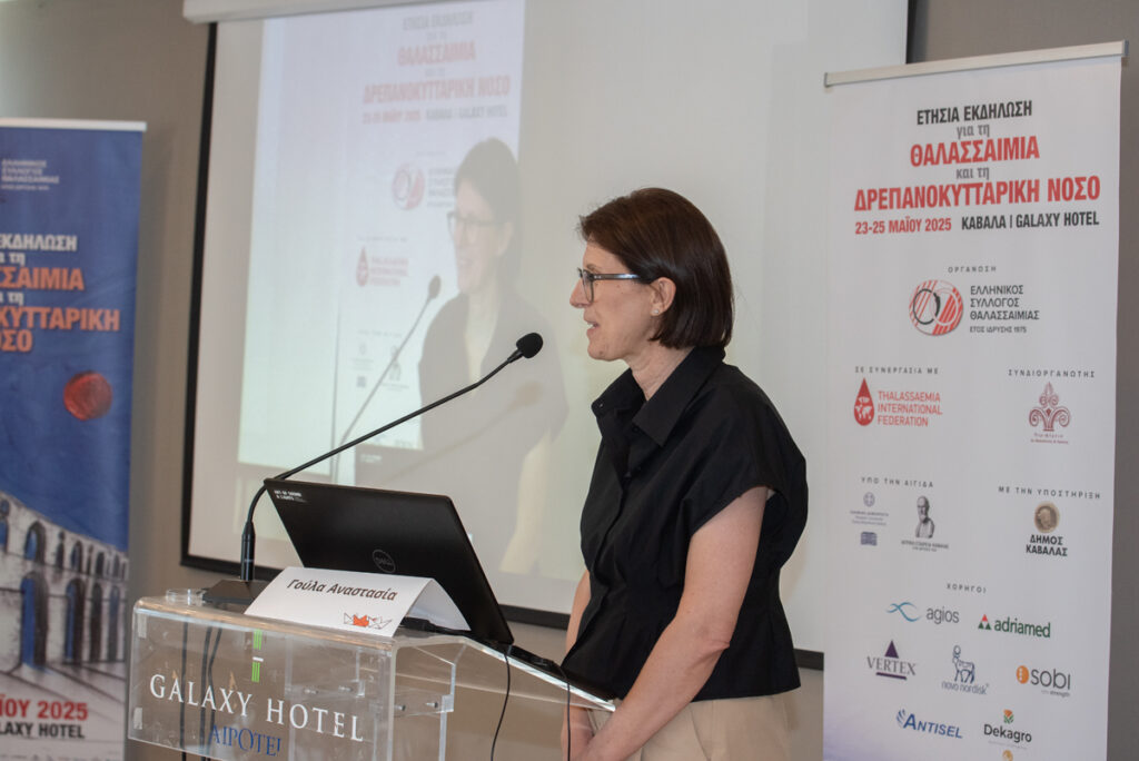 Εκπροσωπώντας τον Πρόεδρο της Διεθνούς Ομοσπονδίας Θαλασσαιμίας κ. Πάνο Εγγλέζο, η κα. Ανδρούλλα Ελευθερίου ως Εκτελεστική Διευθύντρια της ΔΟΘ, η οποία ήρθε από την Κύπρο στην Καβάλα, μεταξύ άλλων στην πολύ σημαντική και γεμάτη ειδήσεις ομιλία της είπε « Η γνώση γύρω από το γενετικό υπόστρωμα και την κλινική έκβαση της θαλασσαιμίας έχει πλέον εξελιχθεί σε τέτοιο βαθμό, ώστε σήμερα να αναπτύσσονται διαφοροποιημένες κατευθυντήριες γραμμές για τις διάφορες μορφές της βήτα και της άλφα θαλασσαιμίας, καθώς και της δρεπανοκυτταρικής νόσου. Η Ελλάδα διαθέτει υψηλότατου επιπέδου επιστημονικό δυναμικό οι οποίοι διαθέτουν σπάνια εμπειρογνωμοσύνη και που έχουν συμβάλει ουσιαστικά στη διεθνή βιβλιογραφία και πρόοδο της Θαλασσαιμίας. Η συγκέντρωση και αξιοποίηση αυτής της εμπειρίας, μέσα από ένα οργανωμένο και αναγνωρισμένο δίκτυο Κέντρων Αναφοράς, είναι απαραίτητη για την καθοδήγηση των μικρότερων περιφερειακών νοσοκομείων (secondary treating centers), αλλά και για την ενίσχυση της διασύνδεσης και ανταλλαγής καλών πρακτικών σε εθνικό, περιφερειακό και διεθνές επίπεδο. Ήδη, η ΔΟΘ έχει αναγνωρίσει και υποστηρίξει δύο τέτοια κέντρα στην Αθήνα ως συνεργαζόμενα, και προσβλέπει στη συνέχιση και ενίσχυση αυτής της προσπάθειας, με την έμπρακτη στήριξη και συνεργασία της Πολιτείας. Είναι απολύτως αναγκαία η θεσμοθέτηση μιας δομημένης και λειτουργικά αποτελεσματικής και με δεσμευτικό –πέραν του συμβουλευτικού της χαρακτήρα- Εθνικής Επιτροπής για τη Θαλασσαιμία και τη Δρεπανοκυτταρική Νόσο, με τη συμμετοχή όλων των εμπλεκομένων φορέων: κρατικών αρχών, επαγγελματιών υγείας, εκπροσώπων των πασχόντων, ερευνητικών και ακαδημαϊκών ιδρυμάτων. Μια τέτοια πολυσυλλεκτική και συμμετοχική επιτροπή θα διασφαλίζει ότι οι εισηγήσεις προς τις αρμόδιες κρατικές υπηρεσίες βασίζονται σε επιστημονικά δεδομένα, στη συλλογική εμπειρία και στις ανάγκες των ίδιων των πασχόντων. Παράλληλα, είναι καθήκον μας να διαφυλάξουμε ως κόρη οφθαλμού το πρόγραμμα πρόληψης και να διασφαλίσουμε την αναβάθμιση της λειτουργίας του, μέσα από την ενεργή επανατοποθέτηση των αρμόδιων αρχών και τη συνεχή αξιολόγηση και βελτίωση των υπηρεσιών. Η ΔΟΘ παραμένει αρωγός και συμπαραστάτης στις προσπάθειες των πασχόντων για βελτιστοποίηση της ποιότητας της ζωής τους. Τα πολυποίκιλα εργαλεία, τα εκπαιδευτικά προγράμματα αλλά και άλλες δράσεις της ΔΟΘ είναι στην απόλυτη διάθεση των πασχόντων, των οικογενειών τους, των επαγγελματιών υγείας, των αρμόδιων εθνικών αρχών και της κοινωνίας ευρύτερα. Η παγκόσμια κοινότητα των πασχόντων παρακολουθεί με ενδιαφέρον τον τρόπο που εσείς οι πάσχοντες στην Ελλάδα διεκδικείτε τα δικαιώματα σας και η ΔΟΘ μεταλαμπαδεύει τις δράσεις και ενέργειες σας ως άριστες πρακτικές προς μίμηση και ισχυρότατη βάση για ανάπτυξη της δικής τους δεξιότητας και εποικοδομητικής συνηγορίας».