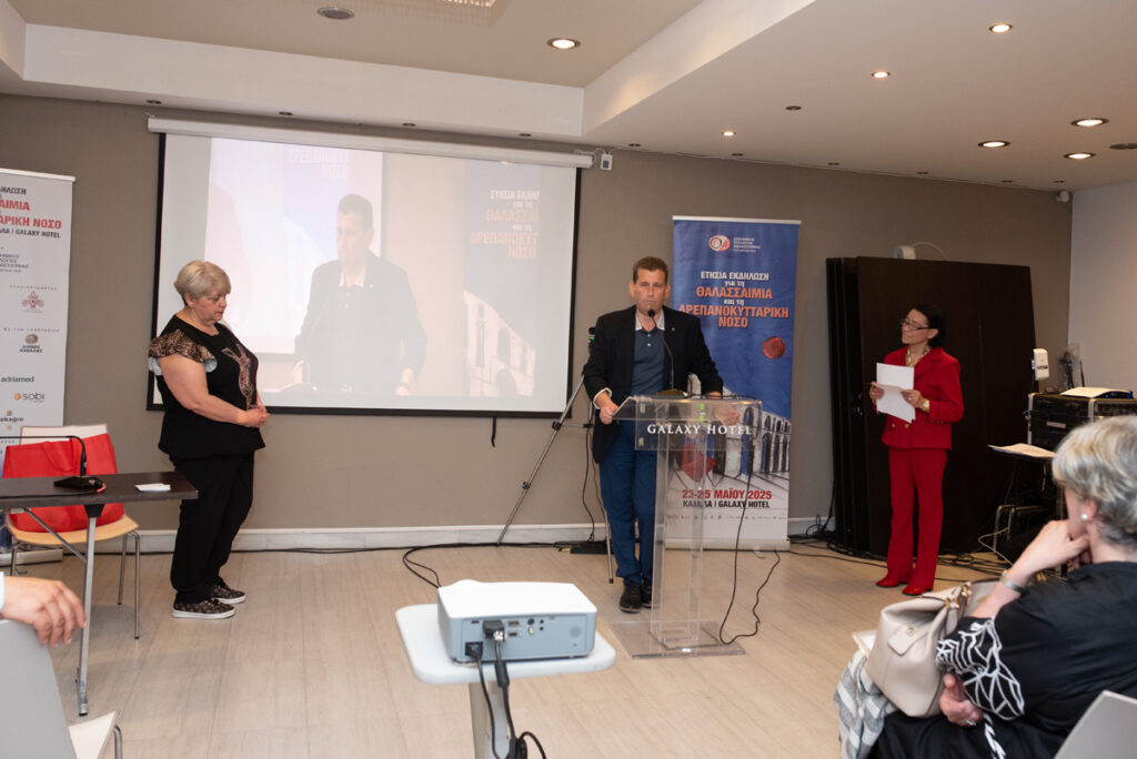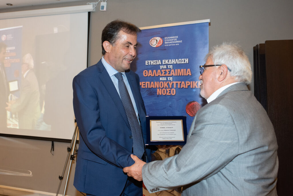 Συγκινητική ήταν η πρώτη μέρα, στη διάρκεια της οποίας και παρουσία του ο Πρόεδρος του ΕΣΘΑ Βασίλης Δήμος απένειμε τα «ΤΙΜΗΤΙΚΑ ΑΡΙΣΤΕΙΑ» σε όσους στήριξαν οικονομικά, θεσμικά και οργανωτικά το Συνέδριο, αλλά και διαχρονικά τα αιτήματα των πασχόντων όλης της χώρας, όπως ήταν ο Καβαλιώτης γιατρός κ. Μιχάλης Τιμοσίδης, ο οποίος ως Υφυπουργός Υγείας συνέβαλε καθοριστικά ώστε να επιλυθούν τα δίκαια, πάγια, διαχρονικά και πανελλαδικά προβλήματα των πασχόντων από Μεσογειακή Αναιμία και Δρεπανοκυτταρική Νόσο και η Νοσηλεύτρια κα. Ουρανία Τσακιράκη για την καθημερινή της υποδειγματική και παραδειγματική, νοσηλευτική φροντίδα και ανθρώπινη στήριξη στους πάσχοντες της μονάδας Μεσογειακής Αναιμίας του Νοσοκομείου Καβάλας.