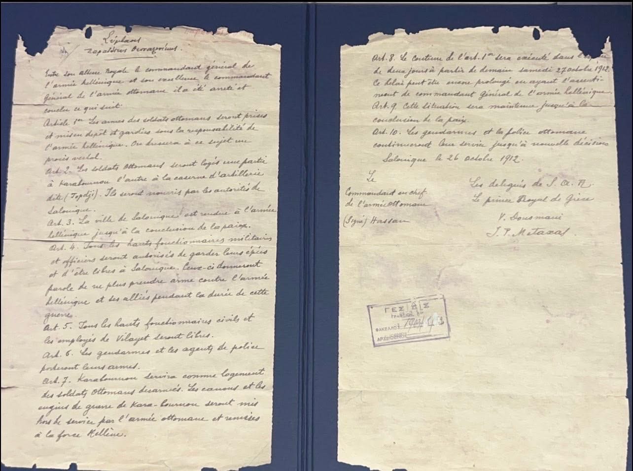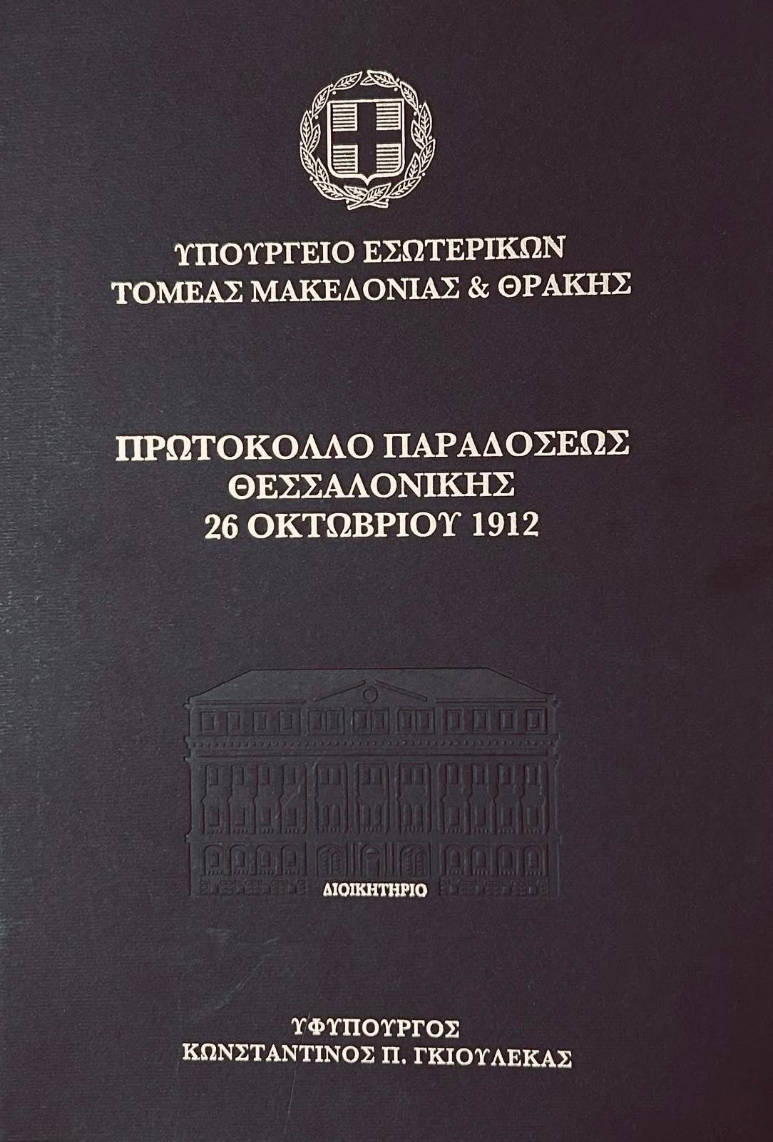 Ο Υφυπουργός Εσωτερικών, Τομέα Μακεδονίας – Θράκης κ. Κωνσταντίνος Γκιουλέκας, απέδωσε στον ΕΣΘΑ «Δίπλωμα Τιμής» κι ένα ακριβές αντίγραφο της συμφωνίας της παράδοσης της Θεσσαλονίκης από τους Οθωμανούς το 1912.